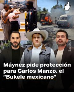 Carlos Manzo, primer presidente municipal independiente en la historia de Uruapan, Michoacán, ha adoptado una línea de confrontación directa contra grupos criminales: transmite operativos en vivo, recorre zonas de violencia acompañado de la policía local y exige apoyo del gobierno federal. Su postura le ha ganado el apodo de “el Bukele mexicano” entre simpatizantes, pero también ha generado amenazas y preocupación por su seguridad. El excandidato presidencial Jorge Álvarez Máynez pidió públicamente que la Federación lo proteja, junto con la población de Michoacán.